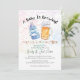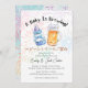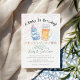 Uma garrafa de cerveja, uma garrafa de leite, e uma pequena no caminho! 🍺 🍼 Este divertido convite para chás de fraldas de aquarela apresenta uma "alegria" entre uma caneca de cerveja gelada e uma garrafa de bebê, rodeada por fogos de artifício coloridos. A frase "A Baby Is Brewing" define um humor lúdico, e o texto japonês anuncia gentilmente a celebração do seu chá! Xícaras do Japão, Junko 🍻