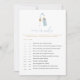 Este chá de fraldas sobre ou debaixo do jogo apresenta uma garrafa de bebê azul empoeirada e dourada e vidro de champanhe e fontes manuscritas. Este design é perfeito para o seu chá de fraldas a qualquer momento do ano.