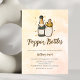 Este design apresenta o tema do chá de casal de Código de Ano Novo "Garrafas de Pavilhão" com uma ilustração lúdica de champanhe e biberões. Convite único e moderno perfeito para chá de fraldas neutro em termos de gênero.