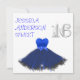 Aniversário do Evento Especial, Celebração, Convite Formal. Estrelas brancas de fundo e prateadas brancas brilhantes, azul-cobalto brilhante e chiffon preto curto vestem-se com Arco azul de fita. Os Números de metal de prata de 16 podem ser excluídos se você desejar. Se precisar de outros números, basta enviar-me um e-mail. Cinzas transparentes sobrepõem-se atrás. RSVP correspondente disponível sob solicitação por e-mail.