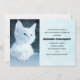 Convite de aniversário com uma fotografia adorável de um gatinho branco de cabelos curtos com olhos azuis brilhantes. Estreitando à distância. As patas cruzaram à moda típica de gatinhos.