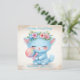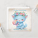 Ilustração decorativa com um gatinho azul segurando um pirulito colorido e usando uma coroa floral. Cores pastéis suaves e detalhes delicados criam um clima visual doce, alegre e divertido.