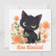 Um gatinho de desenho animado com flores brilhantes de primavera.