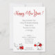 Convite de festas de Ano Novo | Gatinhos de Natal bonitos - gatinhos simples em vermelho e branco - com arcos vermelhos brincando com um bauble - a caligrafia diz: "Feliz Ano Novo" - um gato ama prazer. Que maneira divertida de convidar sua família e amigos para sua Festa de Ano Novo! Esta é parte da coleção de Gatinhos de Natal Cute Meowy da WhimsicalArtwork™