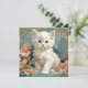 Cartão com um gato branco no estilo de Alphonse Mucha! Este gatinho fofo de olhos azuis posa com flores cor-de-rosa e cobertores azuis. Um presente fabuloso para amantes de gatos e colecionadores de Art Nouveau!