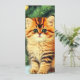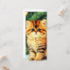 Cartão com um gato natal vintage! Um gatinho laranja com listras pretas senta-se na neve. Atrás do gato está uma árvore de Natal com ornamentos vermelhos e amarelos. Também na neve há um presente vermelho. Um presente perfeito para a época de Natal e amantes de gatos!