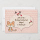 Este convite de aniversário para raparigas apresenta um gatinho listrado de tigre branco e cor de laranja. Há também um pássaro adorável com sorvete num fundo de flor rosa e margarida branca.~
