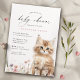Adoráveis convites para chuveiros de bebês com uma ilustração aquosa de um gatinho de mesa num campo de flores silvestres. Design fora do centro com acentos de script. O verso é verde-sábio. Purr-fect para um chá de fraldas primavera.