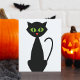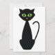Um gato preto de olhos verdes sentado no hetero. Este design parece realmente eficaz neste Convites