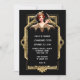 Um quadro de estilo deco de arte ouro falso em ornamentado tem uma incisão preta na qual aparecem modelos brancos para sua redação personalizada e uma garota Flapper elegante na frente. O design é adequado para as festas temáticas de 1920; as festas de arte deco tematizadas ou os eventos Gatsby do Excelente. São perfeitos para uso profissional e pessoal. O verso tem uma foto do aniversariante ou menina que pode ser apagada para revelar um fundo preto.