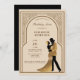 Uma boa diversão rude espera com este elegante convite de festas de aniversário soireita com um tema estrondoso dos anos 20, com um quadro de arco deco e a silhueta de uma mulher elegante dançando com seu parceiro. Um modelo convite de festas de Gatsby perfeito para um tema Gatsby Excelente. Quer seja para uma festa de aniversário 40th, 50th, 60th, 70 ou 80, ou para uma vintena dos anos 20, esta vintage art deco nouveau frame com um efeito de cobertura de folha de ouro (isto é um efeito digital, não uma folha de alumínio real!) brilhará sobre um fundo bege quente. Uma festa de 20 anos rugindo para uma boneca de qualquer idade. Também é adequado para um evento de gala empresarial ou empresarial.