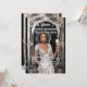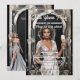 Um quadro do estilo de decoração de pintura de ornamentado falso prateado tem uma bela ilustração de uma mulher de melanina com cabelos longos no ombro vestindo um vestido de sequin abraçado de baixo corte de prata. Ela está segurando um copo de vinho espumante para brindar no Ano Novo. Ela é enquadrada pelo quadro do estilo de vintagem ornamentado e luxuoso que elogia perfeitamente seu traje formal. Uma mulher caucasiana também vestindo um supermercado, e tres chic, prata abraçando vestido, adiciona um toque de elegância às celebrações e tem o mesmo quadro de ornamentado ao seu redor. Modelos para seu texto personalizado aparecem na frente e no verso do convite e podem ser personalizadas para se adequarem à sua ocasião especial. Estas são perfeitas para a gay que aloja uma festa de solteiros; para um aniversário de casamento anual ou prateado; um evento festivo de férias ou uma fabulosa festa de anos novos.