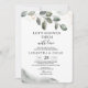 Um convite ao ar livre do Eucalyptus é um convite maravilhosamente desenhado que é perfeito para qualquer evento ou reunião ao ar livre. O convite geralmente apresenta um design elegante e rústico, com folhas verdes de eucalipto exuberantes como o principal ponto focal. As folhas costumam servir como borda natural ou quadro para o texto e gráficos do convite, criando um olhar sofisticado e convidativo. Estes convites são frequentemente usados para eventos ao ar livre, como casamentos, festas de jardim e outras celebrações de temas da natureza. Eles podem ser personalizados para incluir os detalhes específicos do evento, como informações de data, hora, local e RSVP. Alguns convites para o eucalipto ao ar livre também incluem elementos de design adicionais, como sotaques florais, fundos de aquarela ou fontes de caligrafia, para adicionar um toque extra de elegância.