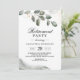 Um convite ao ar livre do Eucalyptus é um convite maravilhosamente desenhado que é perfeito para qualquer evento ou reunião ao ar livre. O convite geralmente apresenta um design elegante e rústico, com folhas verdes de eucalipto exuberantes como o principal ponto focal. As folhas costumam servir como borda natural ou quadro para o texto e gráficos do convite, criando um olhar sofisticado e convidativo. Estes convites são frequentemente usados para eventos ao ar livre, como casamentos, festas de jardim e outras celebrações de temas da natureza. Eles podem ser personalizados para incluir os detalhes específicos do evento, como informações de data, hora, local e RSVP. Alguns convites para o eucalipto ao ar livre também incluem elementos de design adicionais, como sotaques florais, fundos de aquarela ou fontes de caligrafia, para adicionar um toque extra de elegância.