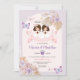 Boho Rosa TWIN Garota Primeiro Sagrada Comunhão Flores Roxas Convite Primera Comunión.