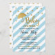 Convites Gêmeas chás de fraldas Azuis e Douradas convidam