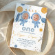 Blue Twins First Trip Around the Sun primeiro aniversario Invitation Cute space ou primeira viagem ao redor do sol primeiro convite de aniversário para garotos gêmeos que apresentam fotos de meninos nos capacetes espaciais. Esta primeira viagem ao redor do primeiro aniversario solar também apresenta, um pequeno sol, planetas, estrelas, espaçonave e espaçador em um estilo levemente retrógrado.
