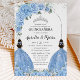 Este convite de 16 anos feito pela chic Quinceañera/Sweet apresenta uma imagem geométrica de brilho prateado enfeitiçada pela delicada cor d'água bahama céu azul floral, verde macio e duas meninas em adoráveis vestidos azuis de bahama. Personalize-o fácil e rapidamente. Basta clicar no botão Editar usando ferramentas de Design para editar o texto, o texto, o estilo da fonte, o tamanho da fonte, a cor da fonte, adicionar mais texto, mover ou remover algumas imagens. As gajas e a coroa são móveis, redimensionáveis, multiplicáveis e removíveis. Personalize-o para se adequar à sua ocasião. Itens correspondentes disponíveis no repositório! c) O Feliz Cat Studio