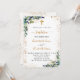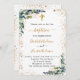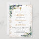 Para o batismo de 2 crianças. Um fundo branco decorado com verde de eucalipto e folhas de ouro e pó de ouro falso. Personalize e os nomes e detalhes da cerimônia infantil. Letras pretas e ouros coloridas. Traseira: fundo branco com poeira brilhante ouro.
