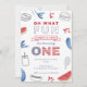 Um biscoito branco vermelho e azul ou ao ar livre primeiro convite de aniversário design gêmeos ou primos/amigos familiares muito próximos de idade.