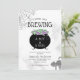 Este adorável convite de chá de fraldas para gêmeos temerários do Halloween inclui a frase "Gêmeos estão se preparando" ao lado de um caldeirão de bruxa borbulhando com roxo e verde. É o tema perfeito para um chá de fraldas do outono tardio.