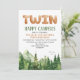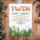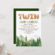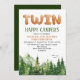 Celebre o primeiro aniversário de seus gêmeos felizes campistas com este encantador convite de tema rústico! Com tipografia ousada texturizada de madeira, uma exuberante floresta aquática e picos majestosos de montanha, este design capta perfeitamente o espírito das aventuras ao ar livre. Ideal para famílias que amam a natureza celebrando seus pequenos exploradores!