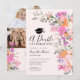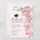 Comemore sua formatura gêmea com este anúncio de duplo formando conjunto. Flores silvestres pastéis românticas, primavera, festas de formatura de casas abertas de Verão com bonito flores selvagens em cor-de-rosa, pêssego, roxo, lavanda, folhas verdes e muito mais, com uma tipografia com escrita escovada sobre um fundo rosado elegante e editável em cor-de-rosa pastel
