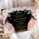 Personalize este adorável convite para o rosa de ouro quinceañera com sua própria redação fácil e rapidamente, basta pressionar o botão personalizá-lo para reorganizar e formatar o estilo e a colocação do texto. Apresentando belas rosas suaves, duas meninas em vestidos de ouro rosa, borboletas, sotaques de ouro elegantes e um fundo preto. As borboletas, as raparigas marinheiras e a coroa são móveis, redimensionáveis, duplicáveis e amovíveis, permitindo-vos personalizar o design para se adaptarem à vossa ocasião. Perfeito para Gêmeas Quinceañeras, Partidos Conjuntos, Doce 16, 18 festas de aniversário, Bat Mitzvahs, e muitas mais celebrações! Também disponível como download digital instantâneo. Itens correspondentes estão disponíveis no repositório! c) O Feliz Cat Studio