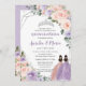 Convites Gêmeos Rosa Florais Roxos Silver Quinceañera