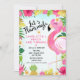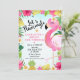 Gêmeos Vamos Rosa Flamingle Flamingo Birthday Convite à apresentação de vamos flamingo flamingo, com tema de aniversário, com um grande flamingo, algumas flores rosadas e amarelas e folhagem tropical. Este convite de aniversário do flamingo de vamos é uma forma colorida de estabelecer a cena de uma festa de aniversário de gêmeas com tema flamingo.