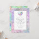 Chamado de gemstone em forma de coração, chamado quinceanera, com elegante tipografia de escrita manual. Uma caligrafia vírgula colorida e um fundo de caligrafia vírgula e um véu iridescente, fazem um elogio inverso ao cenário de um caso de reluz.