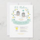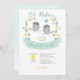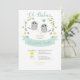 Gender neutral Twin Cute owls babyshower invitation. Design features two cute illustrated bears with cute greens and florals.