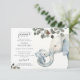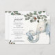 Um simples chá de fraldas de aquarela branca convida com a expressão: "um pequeno amendoim não é o caminho", com um elefante bebê embrulhado no porta-malas de mães. Tipo de script e serif. Sexo neutro. Matizes verdes e azuis para rapazes e raparigas.