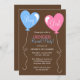 Um gênero giro revela convite com balões em forma de coração, cor-de-rosa e azul. Personalize facilmente a sua festa.