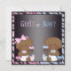 Baby Gender Reveal party admorável e personalizada Baby Shower convoca bebês afro-americanos bonitos com cupcakes e balões cor-de-rosa e azul sobre fundo preto com um bonito brilho digital e quadros de impressão de animais rosa e azuis. O texto é totalmente personalizável para atender às suas necessidades e os objetos de design podem ser movidos, redimensionados ou removidos. Os convites são ilustrados de ambos os lados. NOTE: TODOS OS ELEMENTOS SÃO IMPRESSOS - NÃO O GLITTER REAL. www.resaleclipart.