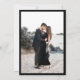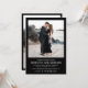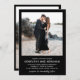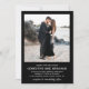 Convite moderno para casamento de fotos apresentando um design mínimo com sua foto favorita sobre um fundo preto. Abaixo estão os detalhes de seu evento em uma combinação de fontes sans serif simples e um script elegante. Este convite seria excelente para um gótico temido ou para um casamento de Halloween.
