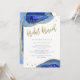 Esses convites elegantes e modernos de brunch de chá de panela apresentam pedras magnéticas azuis de cor aquosa com falso script dourado manuscrito e sotaques.