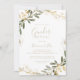 Este convite de festas geométrico de ouro verde-queda revela que é perfeito para um gênero de bebê moderno. A design apresenta uma bela estrutura geométrica dourada com folhas verdes elegantes.