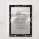 Esses convites modernos e elegantes de festa de noivado apresentam um fundo de mármore preto com um design geométrico de ouro rosa de tendência. Sua foto pessoal é exibida no centro, com sua festa de noivado de convite aparecendo em uma sobreposição.