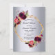 À frente: um fundo metálico prateado falsa com uma estrutura geométrica falsa dourada. Decorados com flores, rosas e penas do estilo "boho" escuras e burguesas. Modelos para o nome da noiva e detalhes da festa. O nome é escrito com um script de estilo manuscrito, letras pretas. Fundo: fundo metálico prateado falsa.