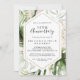 Este convite de aniversário de casamento de 50 anos geométrico dourado tropical é perfeito para uma celebração de casamento moderna. O design apresenta dourado pintado à mão com aquarela e folhas de palmeira e banana verdes com flores cor-de-rosa agrupadas em buquês, adornando uma moldura geométrica.