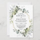 Design apresenta eucalipto, suculentes e elementos verdes em tons de poeirento e azuis/cinzas com uma faixa geométrica de borda do terrário de cor dourada impressa. A parte de trás apresenta um fundo de aquarela verde empoeirado que corresponde a cor natural.