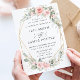Este convite de casamento chic apresenta uma imagem geométrica brilhante dourada adornada por delicada folhagem cor-de-água, rosa, floral e verde macio. Personalize-o com seus detalhes de forma fácil e rápida, basta pressionar o botão personalizar para reorganizar e formatar o estilo e a colocação do texto. c) O Feliz Cat Studio