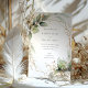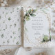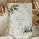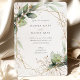 Este elegante convite de casamento combina o charme natural da água verde com o sofisticado brilho de falsos sotaques de ouro. Um arranjo geométrico acrescenta uma reviravolta moderna às folhas orgânicas de eucalipto, apresentadas em diferentes tons de jade, marisco e verde-caçador. O convite é enquadrado com delicados galhos e galhos de ouro, acrescentando um toque de luxo. Perfeito para um casamento chic e contemporâneo, este convite encantará seus hóspedes com sua única mistura de beleza botânica clássica e design modernos.