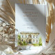 Anuncie seu dia especial com este sofisticado convite de casamento em aquarela apresentando a magnífica Biblioteca George Peabody em Baltimore. A trabalho de arte captura lindamente a grande e clássica arquitetura deste local icônico, feita em cremes e beges suaves e quentes. A cena é elegantemente enquadrada por árvores verdes claras estilizadas, algumas com folhas deliciosas e verdes amareladas e manicuradas. Detalhes como os clássicos postes pretos, uma proeminente urna de jardim de cor terracota, e a via de boas-vindas acrescentam ao encanto. Esse convite, com seu refinado estilo aquarela, evoca um sentido de elegância do eterno e romance literário, perfeito para uma celebração distinta. A frente apresenta os detalhes do seu casamento com a tipografia clássica, enquanto o lado inverso oferece "Os detalhes mais finos" para informações adicionais sobre convidados. A paleta de cores inclui cremes estáticos, beges macios, uma variedade de verdes frescos, pistas de verde-amarelado na folhagem, preto clássico e terracota quente.