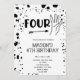 Convites Gesto de mão preto e branco 4º aniversário