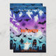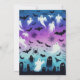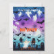 Convide seus convidados para uma festa de Halloween assustadora e divertida com este convite de cheio moderno e ousado! A design da noite apresenta uma paleta colorida de roxo, preto e branco, com toques de azul que evocam o misterioso fascínio de uma noite de Halloween. O céu, pintado em tons de azul e roxo, define o cenário sombrio para os elementos clássicos do Halloween que dançam através da cena. Os morcegos negros atravessam o ar, enquanto as aranhas pretas tecem suas teias ao redor de cruzes e sepulturas, acrescentando um toque sinistro à design. As lanternas de jack-o-jack, com as suas sepulturas negras sinistras, e fantasmas brancos que flutuam à noite, criam um equilíbrio lúdico mas assustador. O design capta a essência perfeita do Halloween, misturando diversão e medo em todos os detalhes. A palavra "Dia das Bruxas" está escrita numa fonte laranja pingando, trazendo um pop de cor vibrante contra o fundo mais escuro. O resto do texto continua a laranja e branco, garantindo que os detalhes do seu partido sejam claros e fáceis de ler enquanto mantém a vibração festiva. O verso do convite reflete a mesma design encantadora, dando um olhar coeso e polido. Este convite é perfeito para dar o tom de uma emocionante cesta de Halloween que seus hóspedes não esquecerão!