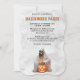 Convite para festas de Halloween com ilustrações de aquarela de um fantasma esquelético com um jack o’lantern em frente a uma grande teia.