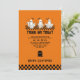 Convide seus convidados para uma comemoração de Halloween assustadora e cheia de diversão com nosso "Truque de fantasia ou convite para o Dia das Bruxas de Fantasmas". Este convite brincalhão apresenta um fantasma amigável vestido para truques ou tratamentos, rodeado por abóboras e elementos festivos do Halloween. Perfeito para crianças e adultos, este convite define a palco para uma festa de fantasia, evento de truque ou de tratamento, ou qualquer encontro de Halloween que combine diversão e medo. Prepare-se para uma noite de ótimos momentos com este convite charmoso e assustador!