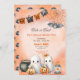 O convite do Dia das Bruxas Fantasmas é bonito em laranja, preto e branco.